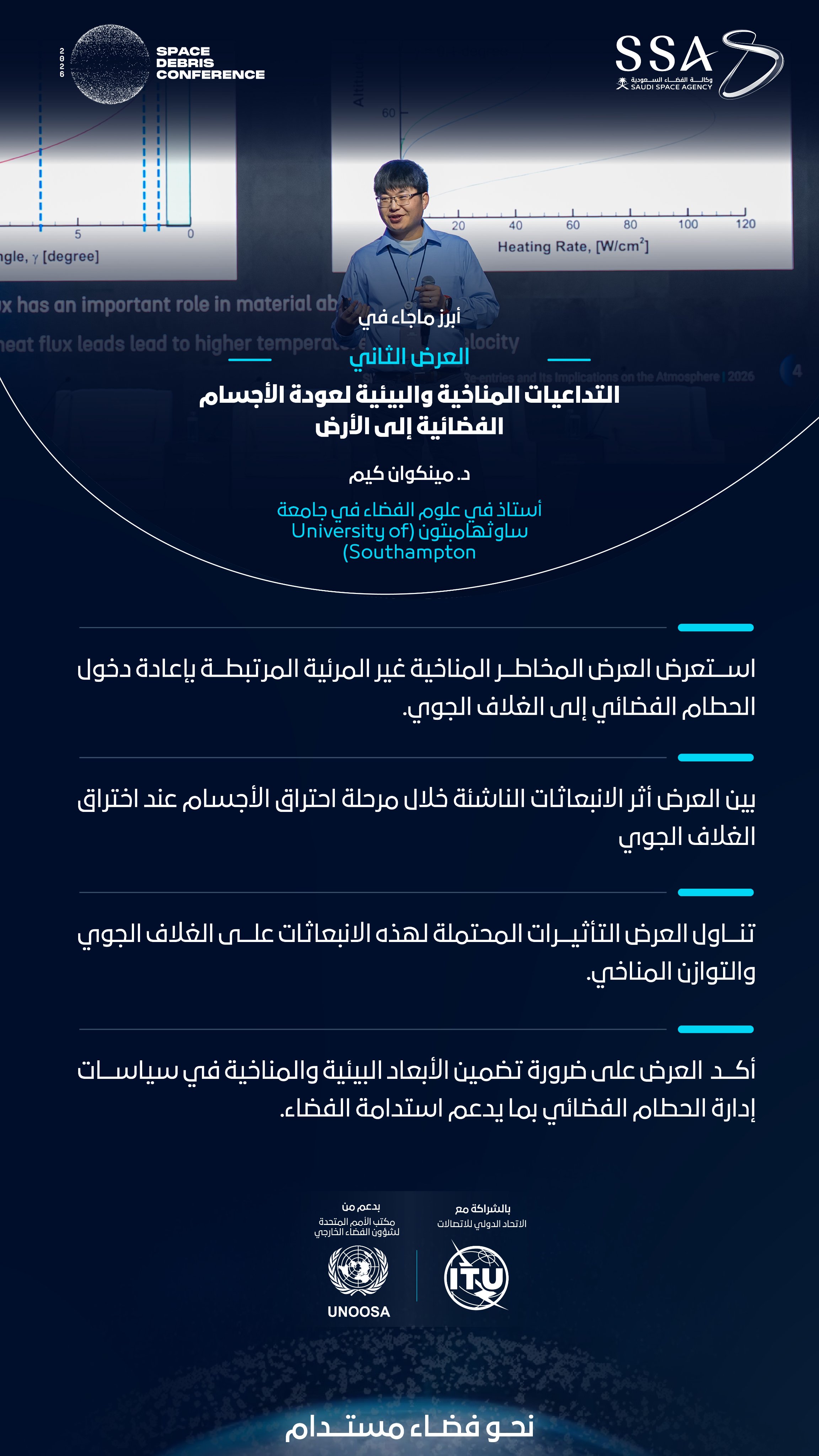 | 16:50-16:25 | العرض الثاني | التداعيات المناخية والبيئية لعودة الأجسام الفضائية إلى الأرض |