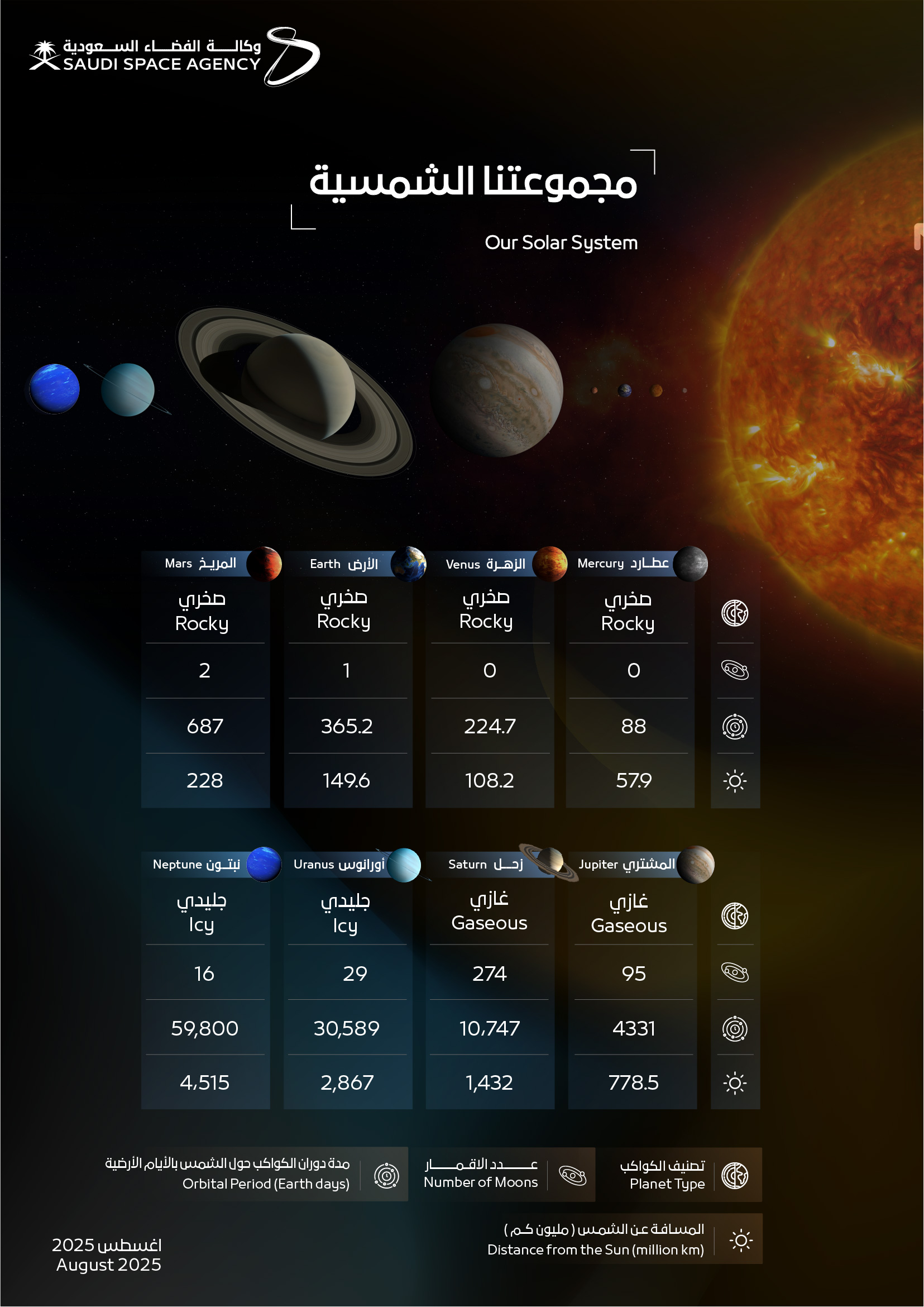 جميع المواد التوعوية في بوابة فضاء المعرفة متاحة للجميع للاستخدام والطباعة مع الحفاظ على شعار وكالة الفضاء السعودية، وسيتم تحديث المحتوى بشكل دوري.